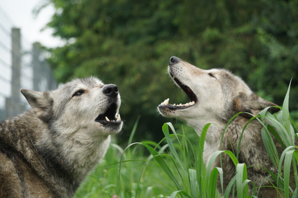 View Tour InformationWolves communicate in three major ways: body language, scent marking, and vocalization. They are most notably recognized by their howl, which may occur more often under the full moon as they are more likely to succeed at hunting due to better visibility at that time.