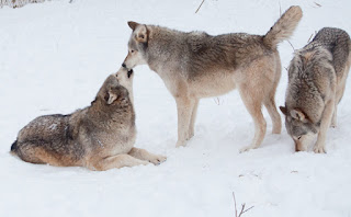Tioga was also very playful. Because of his close contact with humans from a young age, Tioga was known to pounce and play and at times even partake in mischief, stealing various items from volunteers and tugging on their clothing. The most fun he had, though, was playtime with his family. During play, all roles and hierarchies would temporarily dissolve and Tioga would play for hours with his mother, father, and aunt. If Tioga overstepped his boundaries during play though, Merlin would not hesitate to send Tioga a quick reminder of his pack rank.