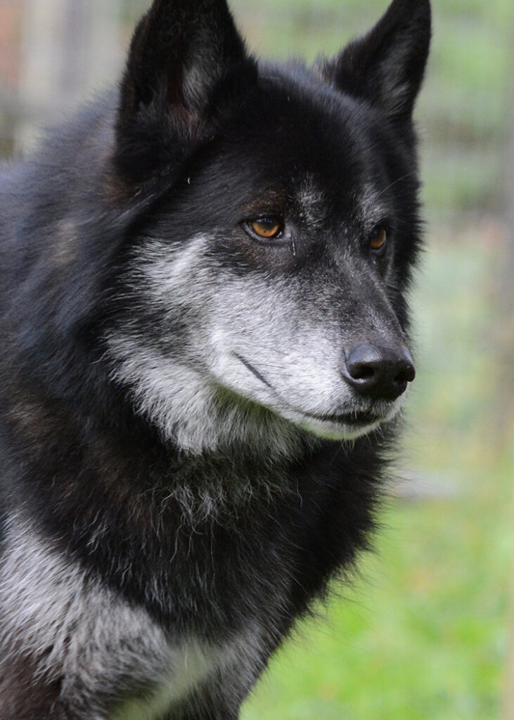 Hi! I’m Kuzco! I just love it here! Some people may think I look silly because of my ears but I have the spirit of the wolf in me. For many years, I lived in a big forest territory with my best friend, Shawnee. She passed away recently and I am still quite sad, but my human caretakers come to visit me and help me feel a bit better. It takes me awhile to trust people sometimes, but once I trust you I’ll never forget you! Stop by to see me on a private tour – I’ll be the one with the floppy ears and long black tail!